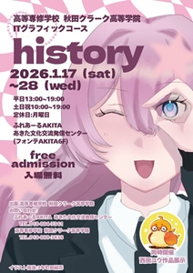 ITグラフィックコース展示会「history」 恒例となったITグラフィックコースの生徒による作品展示イベントが、今年度もフォンテAKITA6階のあきた文化交流発信センターで開催されます。今年のテーマは「history」。生徒それぞれが想うhistoryのイメージを […]