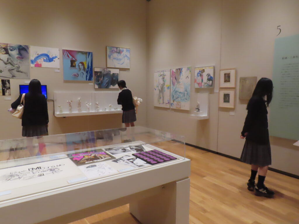 10/9,23(木)のビジュアルデザインの時間に、秋田市立千秋美術館で開催されている「宇野亞喜良展」と秋田県立美術館で開催されている「巨匠たちのパレット展」に、ITグラフィックコースの3年生が行ってきました。イラストに関して時代を牽引してきた宇野亞喜良氏の様々な創作を鑑賞し、「かなりの点数があって、作家の半生を知ることが出来てよかった。」と感想がありました。またパレット展では、海外作家と日本洋画の巨匠たちが実際に使用した個性豊かなパレットと作品を見学。「ピカソ、ダリ、モネなどが実際に使っていた物や絵を見ることができて感じるものがあった。」とありました。今後も、様々な経験から芸術的な感性を高めていきましょう。