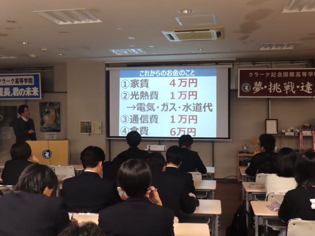 10/24(金)に、2年生対象の校内進路ガイダンスが行われました。株式会社JSコーポレーションの山本さんから「これからの進路活動に向けて」と題して講話をいただき、基本的な生活習慣や礼儀をしっかりすること、学びや仕事の内容・学費・生活費・給料など進学と就職の様々な違いについて、質問も交えながら分かりやすく説明いただきました。