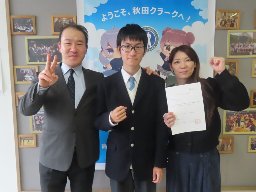 井上さんが「秋田大学 情報データ科学部」に総合型選抜で合格しました。ITプログラミングコースで過ごした3年間、数学や英語などの一般科目はもちろん、専門科目の中で情報処理やプログラミングを学びました。それに留まらず、所属するEIT部では「秋田県若者チャレンジ応援事業」へ応募し採択されたり、フリースクール「ステップひろば」で得意のマインクラフトを小学生たちにレクチャーしたり、秋田県立大学で数学・物理のハイレベル講座に参加したりと、数多くの活動を積極的に行いました。これらすべての頑張りが国立大学合格に繋がったと思います。AI甲子園で上位に入ったその実力を大学でもきっと伸ばしてくれるでしょう。今後の活躍にも期待しています。