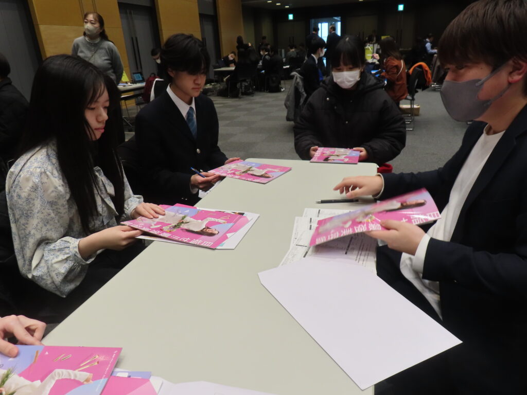 初の参加となった今回、週5日コースと単位制コースの生徒が混ざって、1人につき2ブースの見学を行いました。自動車模型を使った分かりやすい説明や福利厚生の充実した環境があるなど、日常生活では気づきにくいことを見聞きできたことは収穫でした。今後の進路活動に役立つ知識がつき、行動を起こすきっかけを得られた生徒が多かったようです。