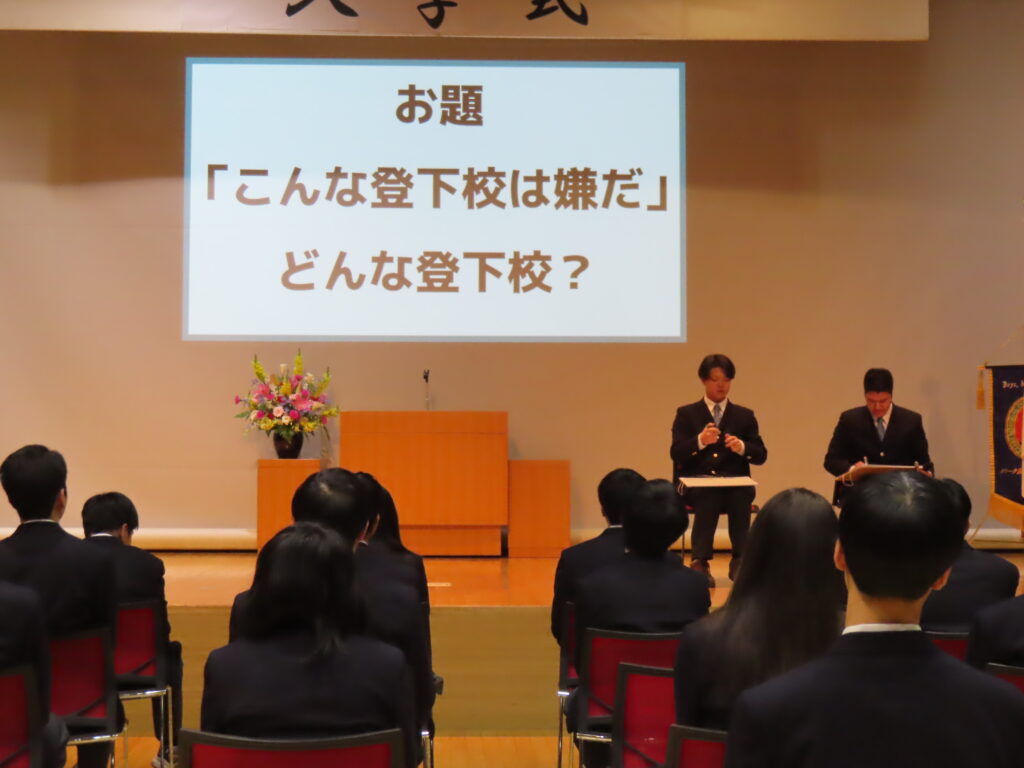 式では、入学許可証を受け取った入学生に、たくさんの祝福の言葉が続き、生徒会長の漣さんから「不安があるからこそ、それを乗り越えようと成長していける」という心強い歓迎の言葉が贈られました。新しい環境に緊張していた新入生の心に、優しく寄り添うメッセージでした。
