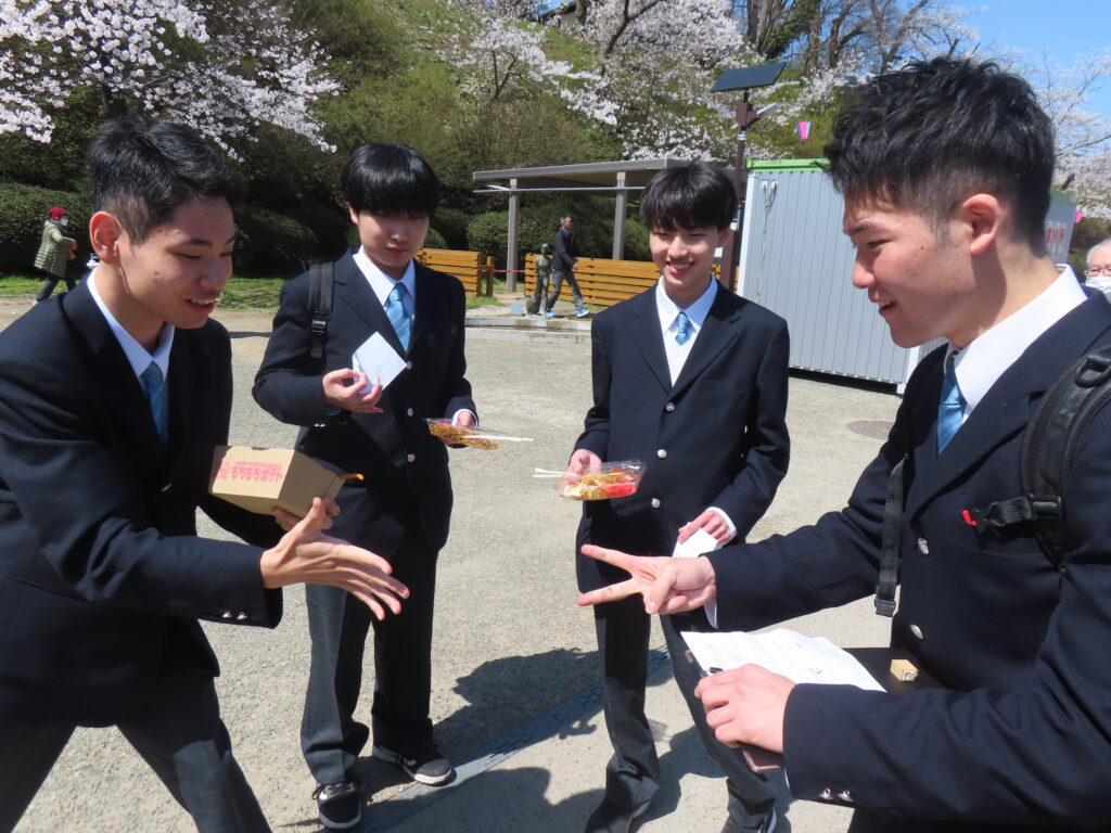 毎年恒例のお花見が千秋公園で行われました。公園では写真を撮ったり、グループで屋台をめぐったりしながら思い思いのお花見を楽しみました。