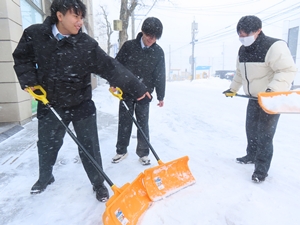 ボランティア雪かき寒い日が続いています。秋田クラークがあるサン・パティオ大町の周りにも雪が積もりました。陸上部が冬休み中に、2年生の総合学習コースの生徒が1月20日(火)に雪かきをしました。吹雪の中、元気に雪かきをした生徒たち。「すごく寒く、雪の手触りは... -