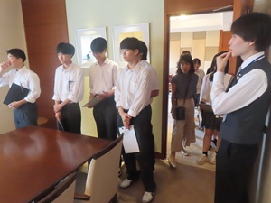 コース・専攻職場見学~秋田キャッスルホテル9月16日(火)、総合学習コースと保育・福祉コースの2年生が、秋田キャッスルホテルへ職場見学に行きました。映像でホテルの仕事内容について確認したあと、客室や宴会場など様々な設備を見学させていただき、最後の質疑応答では生徒からのたくさん...